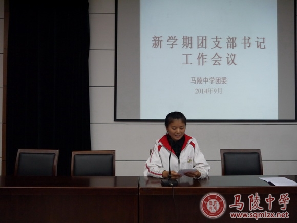 此次会议的主要议程有:向各位团支部书记介绍校团委组织机构和各位领导的分管工作;下发《马陵中学团支部量化考核标准》并做解读;对上一学年在团支部量化考核中,表现突出、成绩优异的团支部书记进行表彰;优秀团支部书记代表伏康宁同学做工作经验介绍;下发《马陵中学团委2014—2015学年度第一学期工作安排》,并做重点项目说明;针对团支部书记工作重点进行业务培训;就搬入新校区后,青年志愿者服务的开展作出安排。