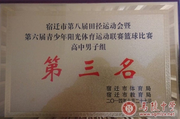 在刚刚结束的宿迁市第八届田径运动会暨第六届青少年阳光体育运动联赛篮球比赛中,我校篮球运动队荣获高中组第三名的成绩。