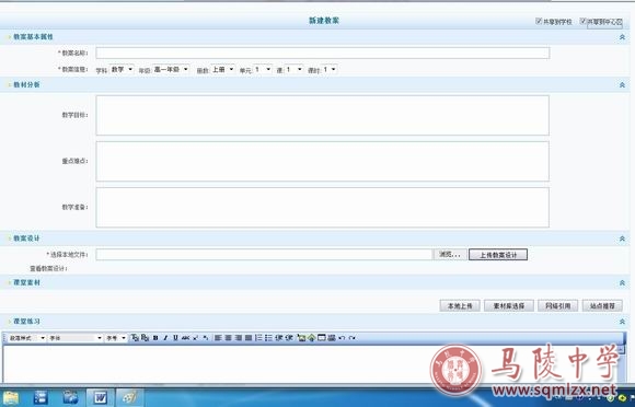 返回到“我的备课”后,点击“新建教案”,按要求将每一个空表内容填完,然后点击“浏览”,添加教案文本,再点击“上传教案设计”。