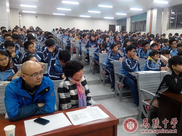 2014年11月16日晚,在马陵中学阶梯教室,全国英语特级教师、江苏省特级辅导员徐振元教授给高二年级学生带来了一场丰盛的英语大餐。徐振元教授擅长中小学英语培训、英语竞赛辅导。今晚,徐振元教授重点讲解了:非谓语动词的用法,时态的用法和被动语态功能,特别介绍了他独特的翻译方法和时间轴的运用。别具匠心的教法和学法让学生耳目一新,受益匪浅,赢得了学生的一致好评。长达三个小时的讲授直击高考,激发了学生学习英语的兴趣,增强了学生对未来高考的信心!