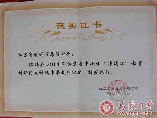 2014年江苏省“师陶杯”论文评比结果已经揭晓,我校荣获优秀组织奖,全晓梅、蔡超2位教师荣获一等奖,蔡露露等13位老师荣获二等奖,蔡雪芹等36位老师荣获三等奖,这是我校教师在论文大赛中获得的又一佳绩,再一次展示了我校教师的科研意识和科研能力。