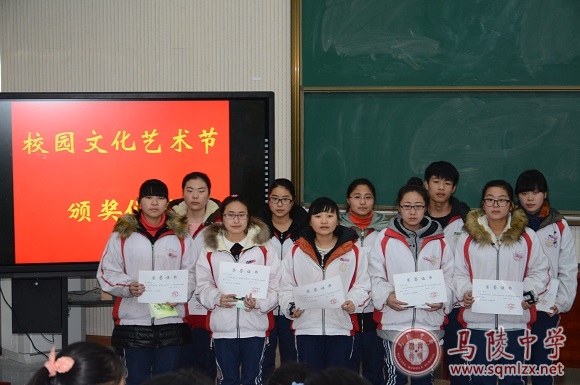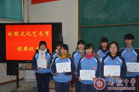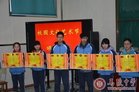 1月20日,校团委在阶梯教室举行了第七届校园文化艺术节颁奖仪式。本届艺术节开展了:以“美丽的马陵中学”为主题的征文比赛,以“做文明使者、展马陵风采”为主题的演讲比赛,文明礼仪知识竞赛,绘画、手工艺、校园书法作品比赛,“陵中好声音”暨第十二届校园十佳歌手大赛等一系列丰富多彩的活动。