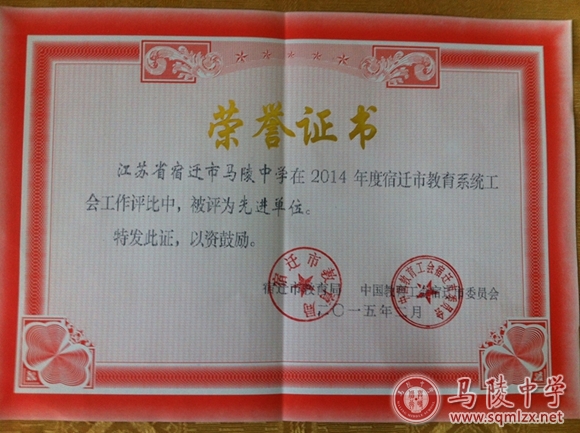 在2014年度宿迁市教育系统工会工作评比中,我校被评为先进单位。