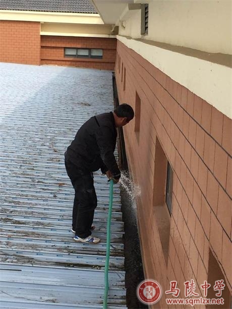 2015年4月8日,我校联系施工队,对艺术楼进行安全排查,及时解决了艺术楼顶部垃圾收集问题,检查中发现了艺术楼顶部渗水、三楼卫生间排水不通等问题,施工队现场施工,及时解决问题,经过自查消除了安全隐患,改善了学校的育人环境。