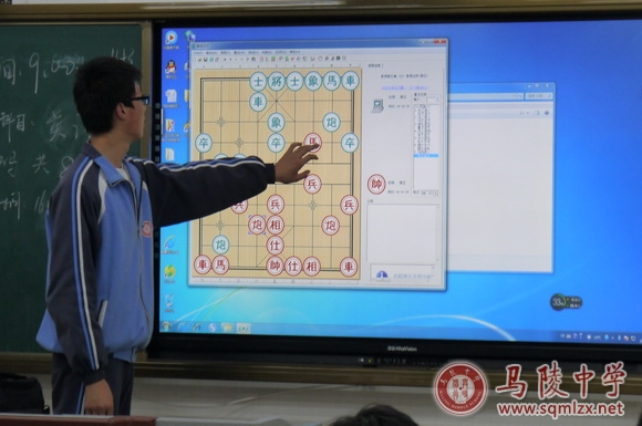 社长甘伟利用多媒体介绍象棋的开局布局