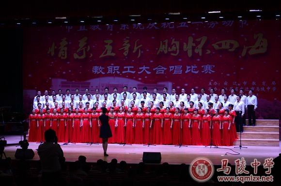比赛在宿迁中学代表队演唱的《香格里拉》、《你是这样的人》两首豪迈的歌曲中开始。参赛教职工精神饱满、士气高昂,用歌声表达了对党和国家的无比热爱,他们整齐的队列、嘹亮的歌声博得了阵阵掌声。《人民解放军占领南京》、《迎风飘扬的旗》、《在灿烂阳光下》、《祝福祖国》、《回娘家》、《江山》、《共筑中国梦》……一首首振奋人心的歌曲,一次次将比赛推向了高潮。最后我校音乐教师丁杨以一首《第一江山春好处》为比赛画上了圆满的句号。