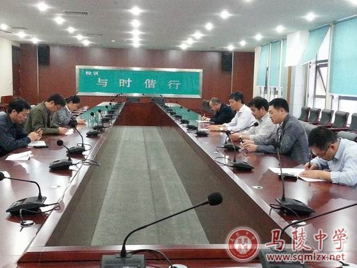 “江苏省中学地理教学质量评价体系建构研讨会暨全省地理名师论坛”活动将于2015年5月13日至15日在宿迁市马陵中学举行。为了确保活动组织严密,保障有力,学校成立了由校长宋志平任总指挥的工作领导小组,并于5月5日召开了第一次工作会议。