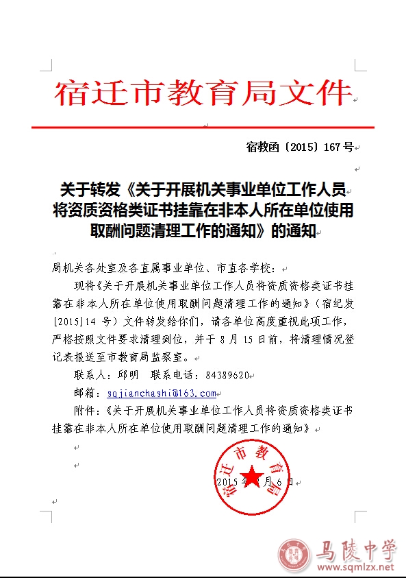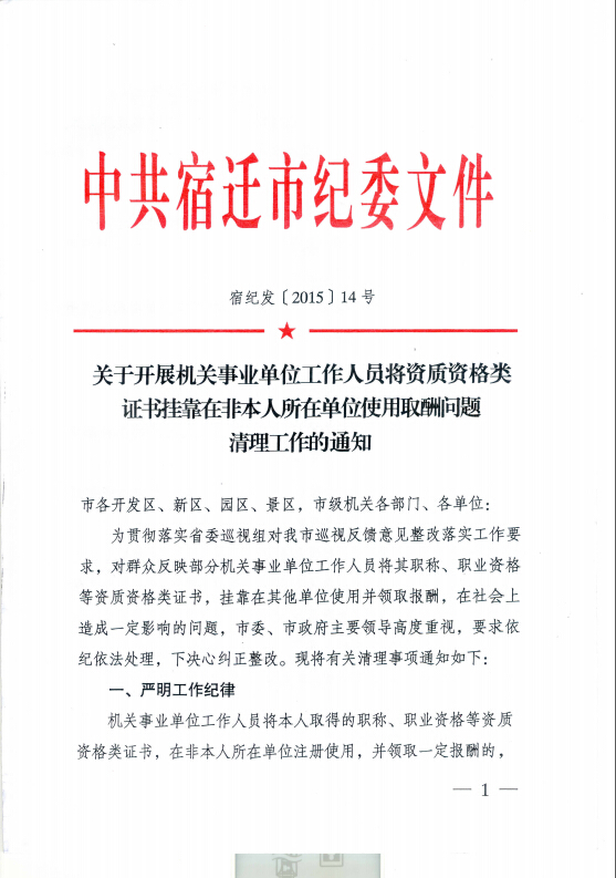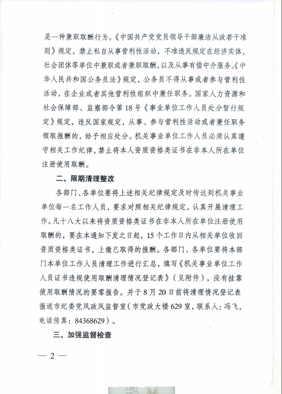 关于开展机关事业单位工作人员将资质资格类证书挂靠在非本人所在单位使用取酬问题清理工作的通知