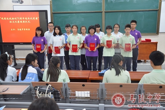 “观看抗战胜利70周年阅兵式有感”征文比赛获奖学生合影