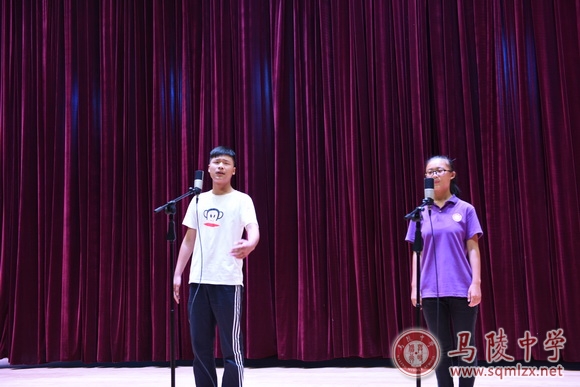 学校高一年级通过一个星期的预赛,筛选出18个班级的21个节目参加决赛。选手们通过自己深情的朗诵,抒发了对祖国的深深热爱,对未来的美好憧憬,精彩的表演赢得观众阵阵掌声。节目最后,高三同学吴雅静和武豪的《钢铁是怎样炼成的》表演节目将现场气氛推入高潮。