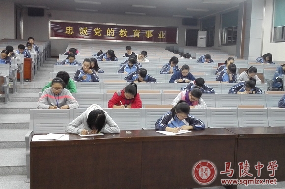 为了迎接江苏省第十四届“中学生与社会”作文大赛,更好的引导学生关注社会、热爱生活,展示中学生的新生活、新思想、新感受,激发我校学生的写作兴趣、写作热情和丰富的想象力、创造力,表达自己的真情实感,促进我校作文教学水平的大面积提高,我校于10月14日在阶梯教室举行马陵中学2015年“中学生与社会”作文比赛。