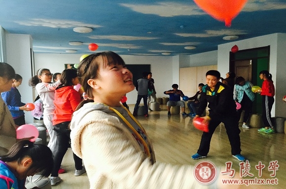 活动在欢快的音乐声中开始,活泼有趣的热身活动立刻调起了大家参与的热情。接着心理老师带领大家进行了“吹气球,拍气球”活动,由此引出活动的主题词“压力”。最后学生们从以下三个方面进行分享和交流:我目前的压力状态;压力的主要来源;我的的应对方法。