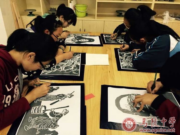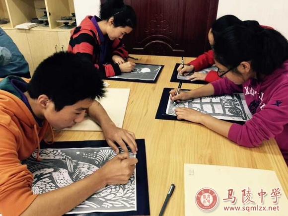 社员们初步地认识了版画的制作工具,并已动手操作。部分同学草图复制很快,便开始使用刻刀对版画木板进行雕刻,经过老师的示范和讲解,同学们基本都能正确使用刻刀,并且知道使用原则。