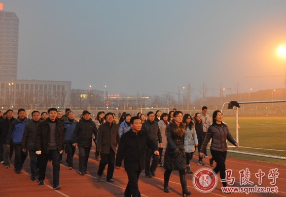 为倡导全体教职工健康生活,快乐工作,响应校长王丽梅“走出办公室,走向操场”的号召,1月8日下午5:00,我校工会在学校田径场举办2016新年全体教职工健康大步走活动。