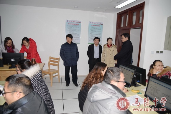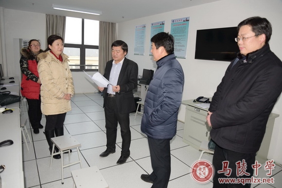 1月17日,市教育局副长陈向阳、教研室主任于明、副主任卓斌在校长王丽梅的陪同下视察了我校期末调研测试情况。王丽梅校长介绍我校本次测试组织的基本情况,本次测试我校严格按照市教育局的要求,一是做好试卷的接收和保管,试卷送达后我校专人管理,24小时开启监控专人值守,做到试卷绝对不泄密。二是思想上高度重视,精密组织,规范操作,严格按规定时间和科目考试,考场按30人一场编排,考试过程中标准化考场监控系统全程启用,按照高考规程进行操作,安排专人监考巡查。本次考试宿迁市中心城区高中采用统一网上阅卷,阅卷工作在马陵中学进行,现阶段市区全体高三教师正在我校网络机房进行阅卷。