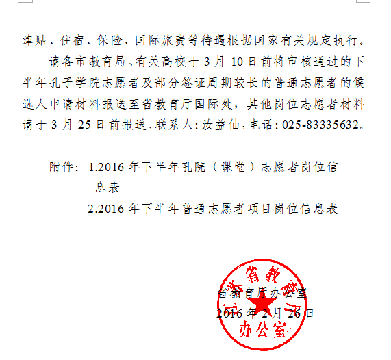 附件:省教育厅办公室关于选派2016年下半年汉语教师志愿者的通知