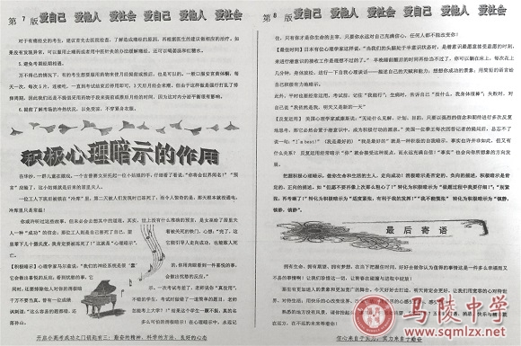 小高考将至,学生们心理状态调整的必要性、重要性不言而喻。为了帮助学生们有效应对考试期间的各种问题,缓解紧张、焦虑情绪,增强信心,取得出色成绩,我校心理健康教育中心印发小高考考前心理辅导材料。材料包括16个怎么办,积极心理暗示的重要性,如何应对“倒霉期”痛苦三个版块,多角度、全方位为高二学子心理护航。