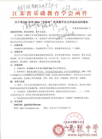 关于举办江苏省2016“创新杯”优秀教学论文评选的通知