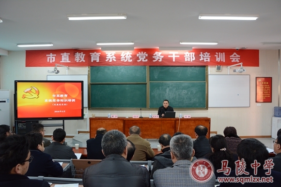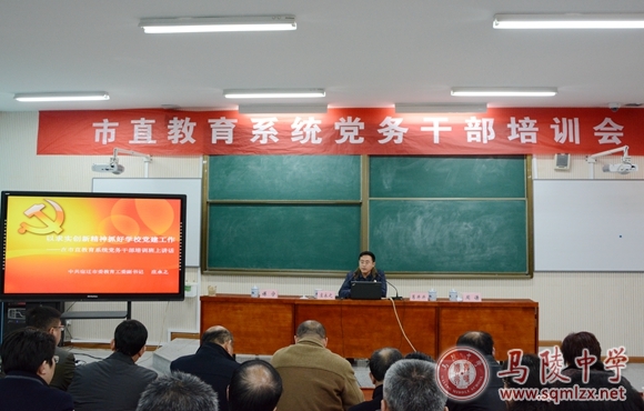 为推动“基层党建工作责任深化落实年”健康扎实开展,3月23日下午,市委教育工委举办的市直教育系统党务干部培训会议在我校党员活动室召开。市直教育系统100多名党务干部参加了学习研修,市委教育工委副书记庄永之、市教育局组织人事处副处长葛井井进行授课指导。