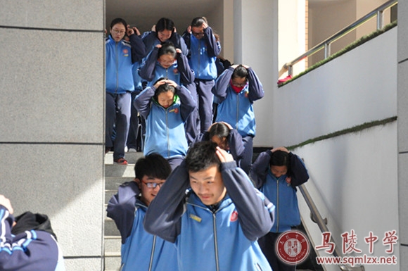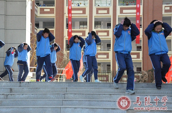 当日上午第二节课,全校各班级老师们都在教室里给学生作演练前的动员,向学生再次讲解应急逃生的正确方法、讲明演练程序、内容、时间和纪律要求。9时30分,警报声响起,同学们在老师的引导下,双手抱头,从教室里跑出。大家按照预定路线,快速有序地通过安全通道向预定的“安全地带”跑去。