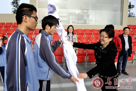 校长王丽梅为此次活动授校旗、班旗和主题旗,并为同学们壮行。