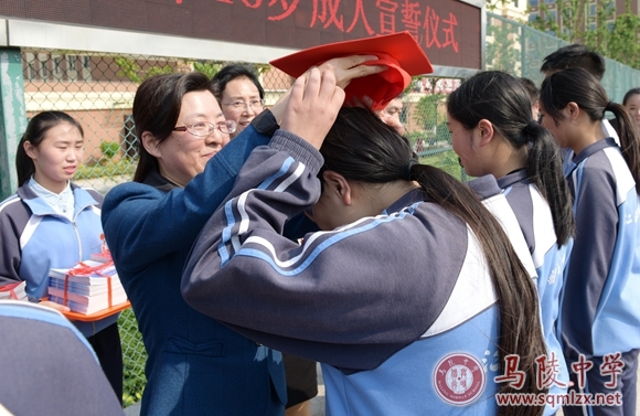 冠戴“成人帽”,行“拜谢礼”,步入“成人门”,踏上“成才路”…… 4月29日下午,宿迁市“四仪”示范项目、马陵中学2016年十八岁成人宣誓仪式在我校运动场隆重举行。市文明办、市教育局分管领导,各县(区)文明办、教育局分管领导,全市普通高中学校分管校长参与了本次活动。市文明办副主任陈夫生为我校成人仪式示范项目授牌。