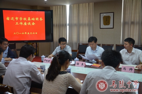 5月6日,宿迁市学校基础团务工作座谈会在我校举行。团市委副书记任杰、团市委组织部尹和尉、学少部冯帅及江苏省宿迁中学、江苏省宿迁卫生中等专业学校等7所中学中职学校团委书记参加会议。