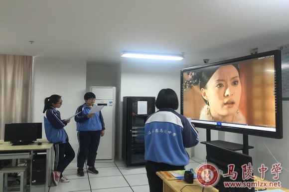 播音主持社指导老师带领大家回顾了上节课的影视作品片段,然后请同学们到讲台前分小组配音。最后老师对同学的模仿表示肯定,并对不足之处进行指导,活动现场气氛融洽。