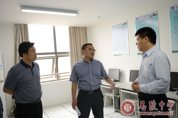 张德超一行在我校汪德强副校长的陪同下,认真察看了我校的校园环境、考场和标准化考点控制中心。在标准化考点控制中心,张德超一行详细查看了该室的设备设施和工作流程,并且通过视频监控系统查看了考场的布置情况,提出了科学合理的意见和建议。