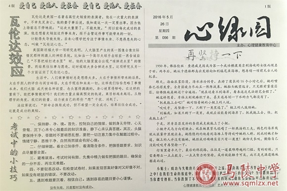 高考临近,为帮助高三学生调适自身心态、缓解考试焦虑、增加自信心,我校心理健康教育中心特编辑本期“高考专题”心理小报,指导高三学生调整心态,积极迎考。
