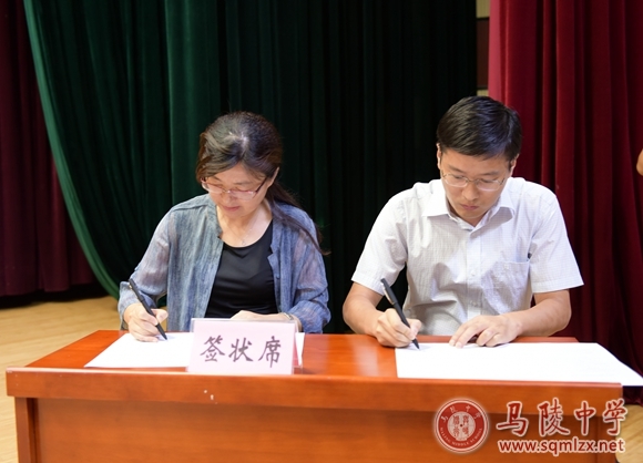 颁奖之后,王丽梅分别与蔡之刚、朱卫、李毅、袁金花四位年级主任签订了工作目标责任状。