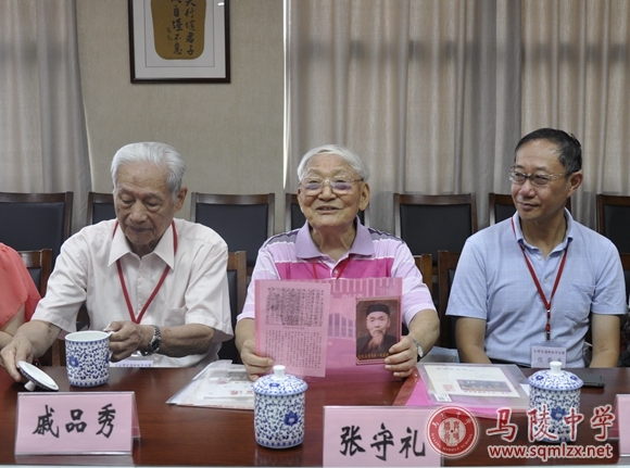 张老是抗战胜利后宿迁县立初级中学(马陵中学前身)的第一届初中毕业生,至今他还保留着自己当年上学时使用过的学生身份证和毕业证。尽管这些原件早已破损和陈旧,但是张老一直小心翼翼地收藏着,而且这次回来特意把这两样东西送给学校留念。同时,老人还送来了当年的同学录、毕业照等珍贵的资料。