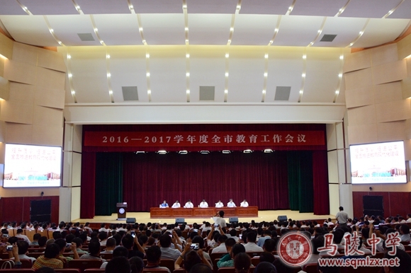 为全面贯彻市委市政府、省教育厅关于教育工作的决策部署,回顾总结过去一学年全市教育工作,研究部署新学年教育工作目标任务,9月9日,2016-2017学年度全市教育工作会议在我校隆重召开。市教育局领导班子成员出席会议。