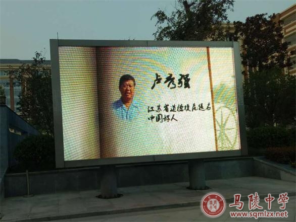 为引导教育学生崇德向善、见贤思齐,塑造良好的育人环境,形成文明校园氛围,马陵中学在接到宿教函(2016)355号文件后,立即行动,利用学校南大门大屏幕滚动播放《善行宿迁 德润西楚•宿迁市道德模范动漫公益宣传片》;各教室利用一体机组织学生观看学习宿迁道德模范先进事迹,加强对先进人物崇高精神的宣传,传播正能量。很多同学观看之后很受感动,表示向道德模范学习,做一名文明有礼,遵纪有德的宿迁人。