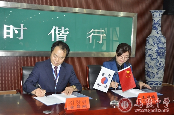 10月27日,韩国友城青松郡县西中学校长金昌顯及郡厅工作人员金武涉率教育代表团一行19人莅临我校访问,并与我校签订友好姐妹学校协议书,标志着两校自此正式缔结为国际友好学校。