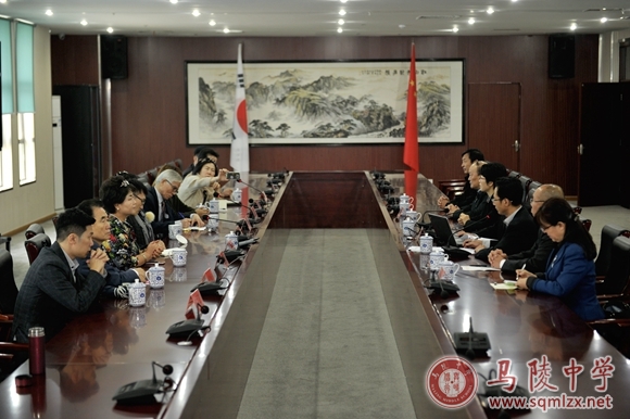 在交流会上,我校校长王丽梅向韩国友人介绍了学校的校园文化,办学理念,办学特色以及学生学习情况。考察团成员表示,马陵中学的校园环境,办学理念给他们留下了深刻印象。