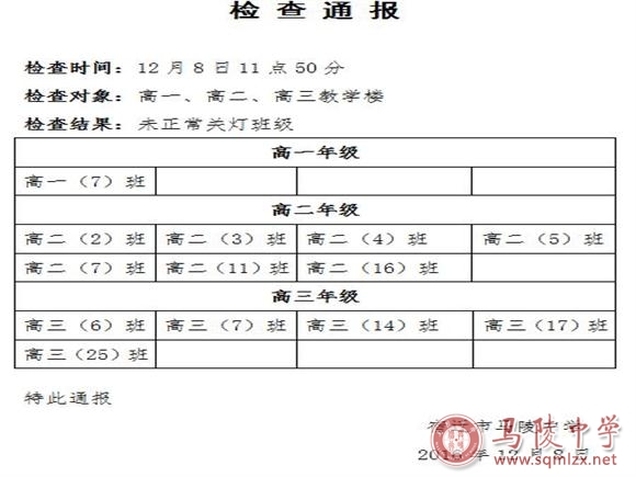未正常关灯班级检查通报