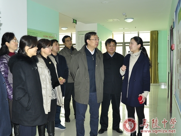 葛道凯一行饶有兴致地观看了我校迎接文明城市创建、“两学一做”、“一校一品”等主题展板,参观了学校心理健康中心,询问了各功能室运行情况,亲切与心理健康教师交谈,并就如何深入学生心理、察觉新问题、积极主动作为等方面提出了意见及建议。