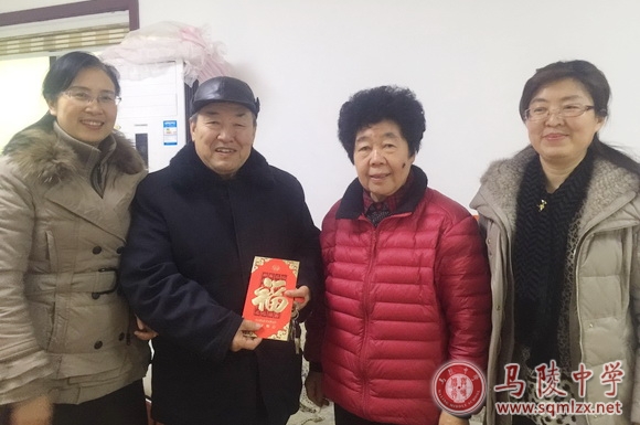 丹凤来仪,金鸡报晓。又是一年新春到,马陵中学主要领导冒着严寒忙慰问,登门拜访离退休老同志,给他们送去新年的祝福,向他们报告2016年学校取得的成绩,和他们亲切地拉家常,祝愿他们身体健康,新春快乐。感谢老同志对学校一如既往的关心和支持,并邀请老同志常到学校走走看看,给学校的建设和发展献计献策。