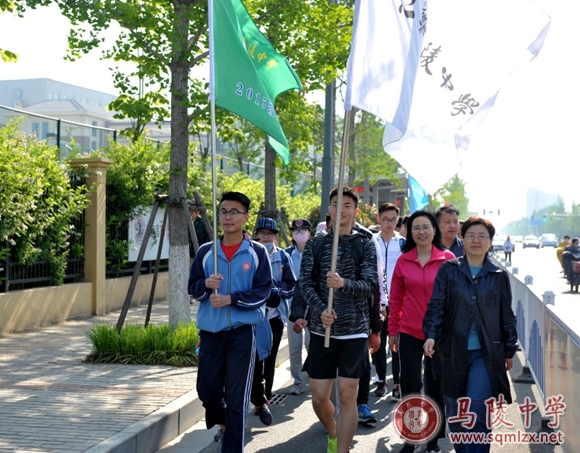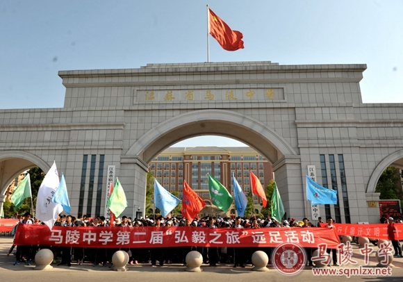 校长王丽梅为此次活动授校旗,宣布马陵中学第二届弘毅之旅远足活动开始,并为同学们壮行。校旗开道,班旗引路,全体同学迈着整齐的步伐,带着勇气和豪情浩浩荡荡地从南大门出发,“弘毅之旅”正式开始。