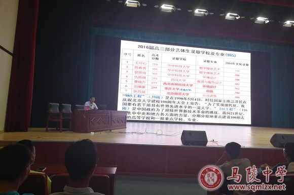 蔡之刚就艺体专业、文化专业如何冲刺名校对学生进行了具体的指导。强调了数学、物理、化学、生物、信息技术奥赛的重要性,要求学生多参加高校自主招生认可的竞赛,力争获得名牌大学自主招生面试的资格。通过高校自主招生获得相应加分,进入理想大学和选取理想专业。