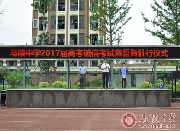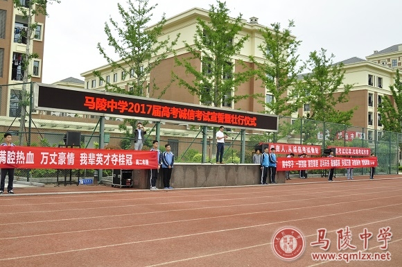 2016余音绕梁,2017凯歌奏响。2017年6月5日上午,马陵中学在操场隆重举行“马陵中学2017届高考诚信宣誓暨壮行仪式”。仪式由团委副书记刘阳主持。