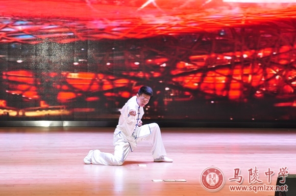 体育班首先登场,一段武术表演点燃了会场,也展示了他们矫健的身姿。仝桐和徐干两位同学用自己优美而又充满力量的体操动作表达了他们对母校的感谢。
