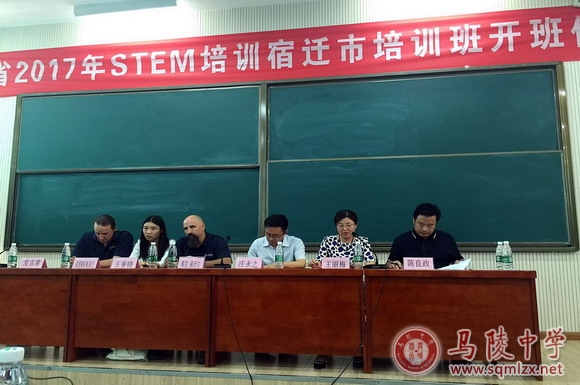 7月24日,在马陵中学的阶梯教室举行了隆重的开班仪式,会议由宿迁市教师发展中心陈良政院长主持,马陵中学校长王丽梅致辞,欢迎远道而来的外教,并向大家介绍了马陵中学近年来取得的丰硕的办学成果。两名美籍教师也分别发表了即兴讲话,向大家简单介绍了STEM,并对接下来的学习提出一些要求。本次培训班班长马陵中学苏永辉老师代表全体学员作了表态发言。最后教育局领导庄永之对本次活动的承办单位马陵中学以及全体学员提出了具体要求。
