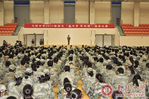 激情八月,热情似火;军训激昂,如梦飞扬。8月13日下午,马陵中学2017级新生“高中梦 军训情”演讲比赛决赛在校体育馆成功举行。副校长褚俊清、高一年级一部主任胡博、二部主任仲东、高一年级全体班主任以及高一年级全体新生参与了此次活动。担任本次演讲比赛的评委全部是来自高二、高三的优秀语文教师。