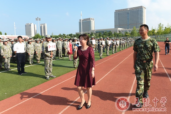 8月15日,天空湛蓝、云淡风轻,阳光明媚,2017级高一新生军训闭幕式在操场上火热进行。校长王丽梅、教官、高一各班班主任、高一全体新生参加闭幕式。副校长张丽华主持闭幕式。