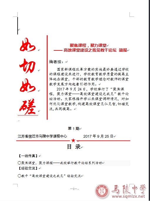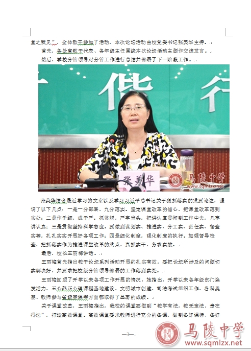 “聚焦课堂,聚力课程”,我校教干论坛系列活动的举行,为打造高效课堂指明了方向,必将进一步推进我校课堂教学的深入改革。
