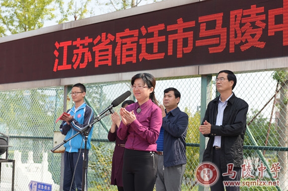 校长王丽梅同志宣布江苏省宿迁市马陵中学首届体育节开幕