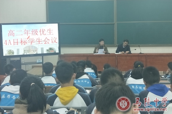 为了鼓舞学生士气,树立学生名校意识,激发学生冲4A的信心与决心,高二年级于10月24日晚在阶梯教室1召开了高二年级优生及4A目标学生会议。会议由高二1部主任蔡之刚主持,分管副校长杨忠平出席了会议。