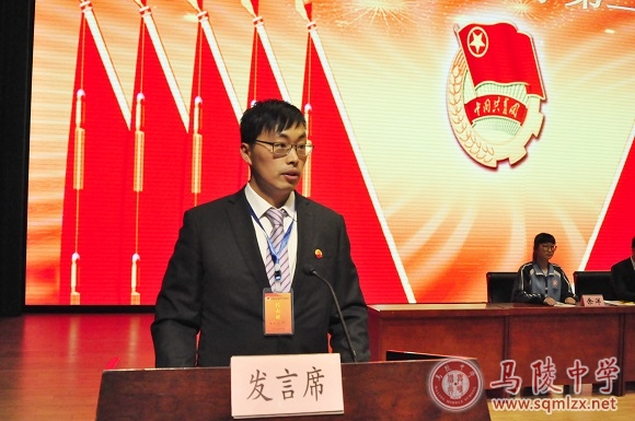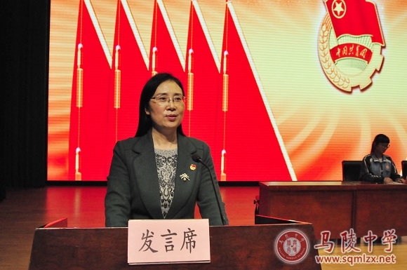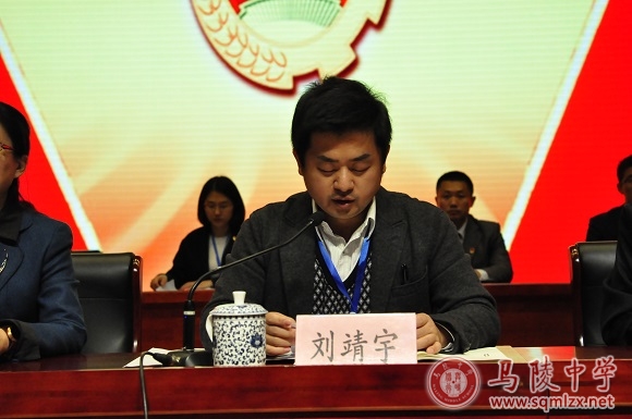 刘靖宇首先致辞。他在致辞中对大会的召开表示热烈的祝贺,向全校的团员青年致以亲切的问候,他对江苏省宿迁市马陵中学共青团工作给予了充分的肯定并对学校团委工作提出了三条宝贵意见:一是让持续的学习成为团员青年的自发要求;二是让丰富的活动成为团组织永葆生命力的外在保障;三是让创新的理念成为加强团的自身建设的内在动力。
